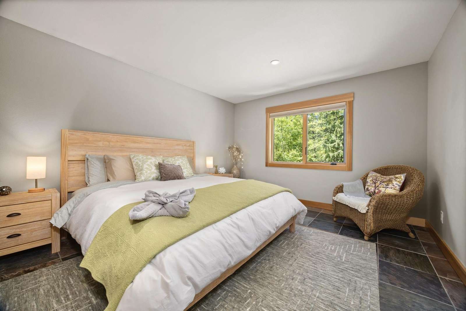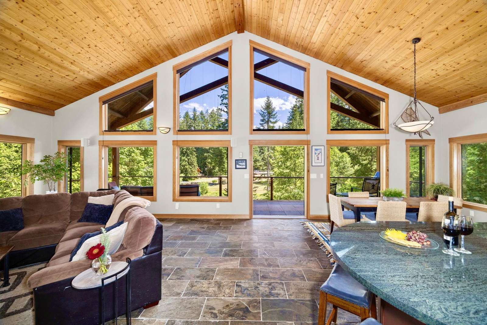 This gorgeous 3100 sq. ft home has unbeatable, one-of-a-kind views, for the Glacier/ Mt. Baker area. Standing in the living room you look out over a serene quiet pond with the backdrop of Church Mountain just behind it. This home is located among the closest lodging for the Mt. Baker Ski area, Artist point, and Mt. Baker Snoqualmie National Forest. It has 3 large bedrooms with king beds, a 4th bedroom with a queen bed, and a 5th bedroom with two twin beds. There are two master suits, and 4 bathrooms in total. The breathtaking views, cozy river rock fireplace, and relaxing atmosphere make this an ideal and memorable getaway. There is an auto-start generator, so you never have to worry about being left in the dark during power outages.