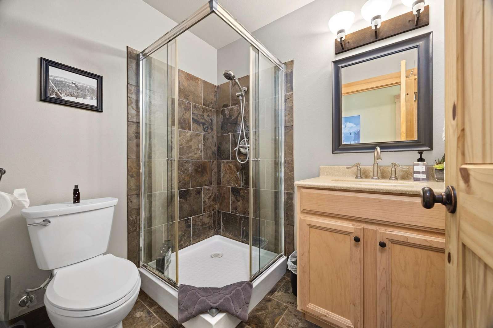 ~ PLEASE NOTE: This driveway is steep, and it can be very icy and snowy in winter. We recommend 4 wheel drive or all-wheel drive vehicles only for staying in the winter time (approximately mid-October to late March). We do plow and shovel driveways as quickly as we can once snow arrives, and we do our best to maintain them safely, but if you are leaving early to head to the mountain and your vehicle packs down the snow it won’t plow as well and it will turn to ice later in the day. Please plan accordingly. THERE IS ABSOLUTELY NO STREET SIDE PARKING ALLOWED; ALL VEHICLES MUST BE COMPLETELY IN THE DRIVEWAY PER COMMUNITY RULES. There is a 2-car garage at the top of the hill you are welcome to use if you can make it to the top. If you have roof racks, they may not fit into the garage.